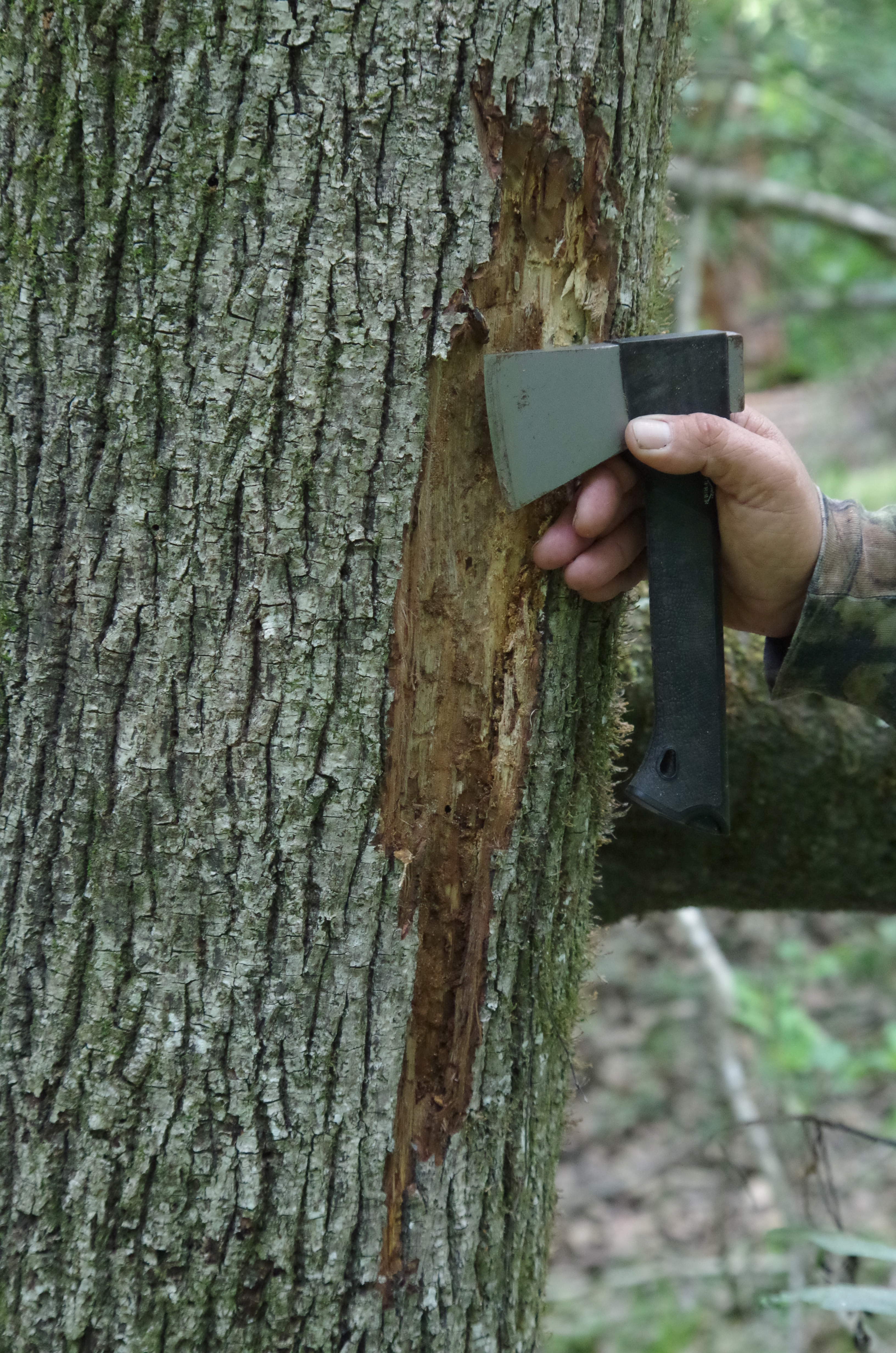 Like two other current target trees, which are sweet gums not hickories, I selected this one because it had already been scaled (extensively in this case); the remaining (majority of) targets have been chosen in hopes that they will be scaled in the future. For most of the hickories we’ve found, including ones that I’ve watched for extended periods of time, the bulk of the scaling appears to have been done in a single visit.